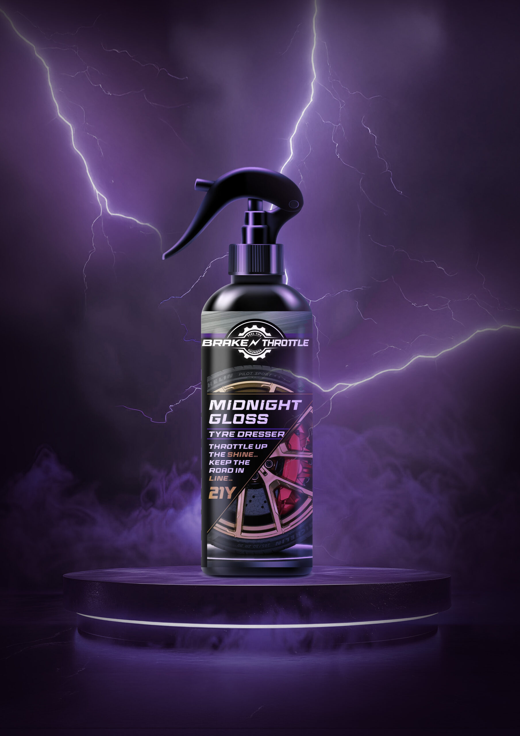 Brake N Throttle Tire Polish Spray – Intense Shine, Ultimate protection elevate the look of your ride Brake n throttle tire Polish Spray, designed to give your tires a deep, rich black finish with long-lasting shine. Our advanced formula not only enhances vehicle’s appearance but also provides a protective barer against dirt, Water and UV rays that cause fading and cracking. The non-greasy, fast-drying solution ensures a smooth, even application leaving no messy residue behind. Whether you prefer a sleek satin look or a High-gloss finish , this product delivers a premium result with minimal effort.